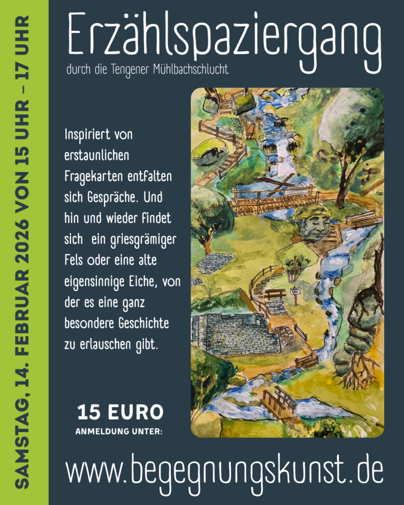 Inspiriert von erstaunlichen Fragekarten entfalten sich Gespräche. Und hin und wieder findet sich ein griesgrämiger Fels oder eine alte eigensinnige Eiche, von der es eine ganz besondere Geschichte zu erlauschen gibt.
